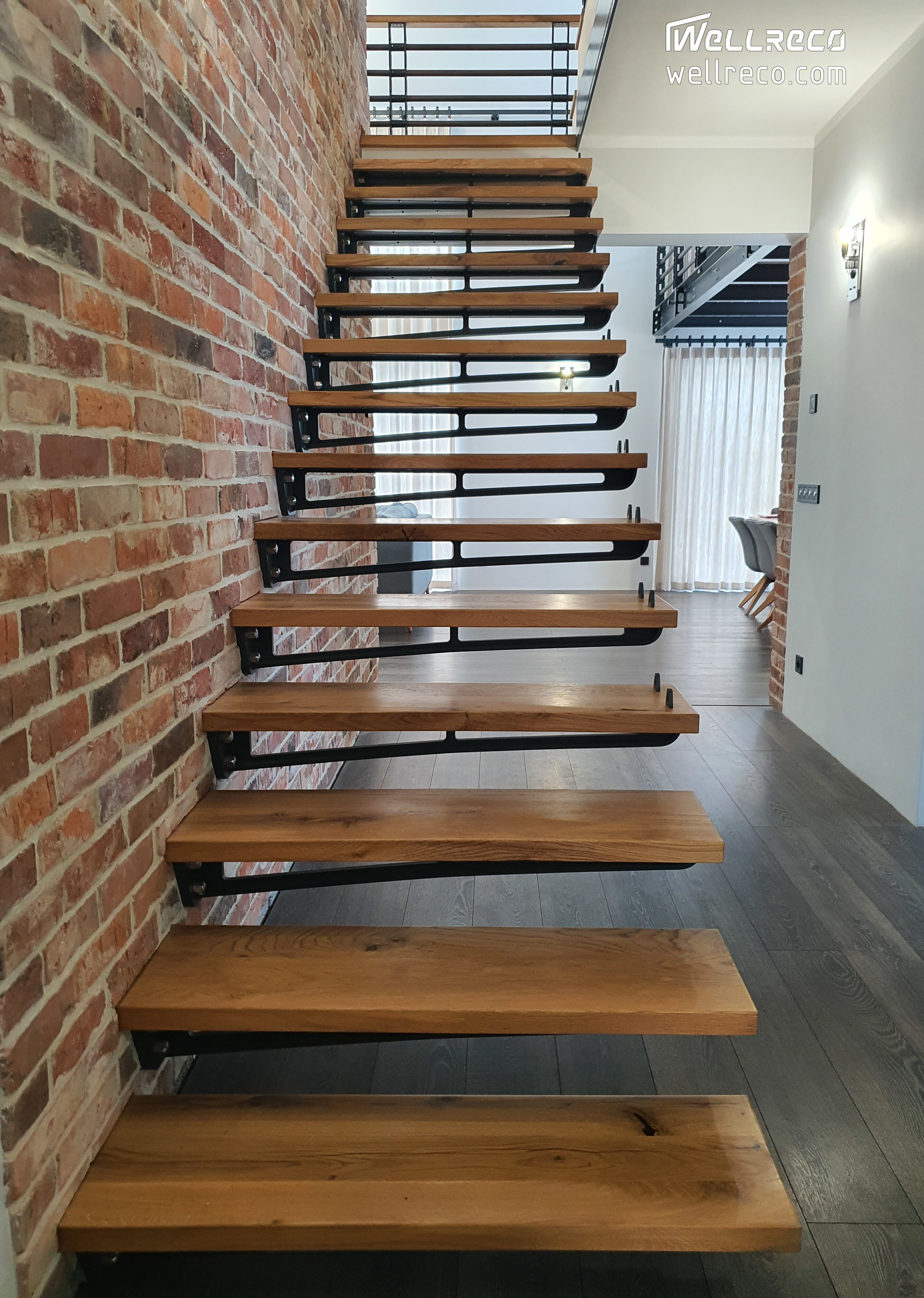 Our cantilever stairs are an interesting alternative and a new perspective on design of floating stairs. This type of construction allows both to maintain a large clearance and accomplish adequate strength. Thanks to the light passing freely to the other side, the cantilever stairs enlarge the room optically from a distance, while up close, they appear to be impressive and massive. A balanced combination of steel and wood offers quality at the highest level. An alternative to common floating staircases.